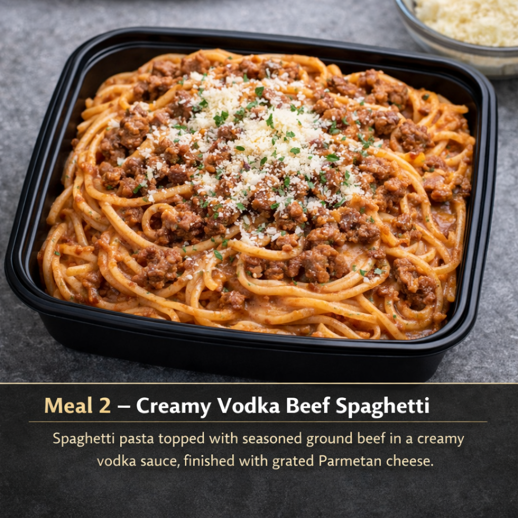 Meal 2 – Creamy Vodka Beef Spaghetti