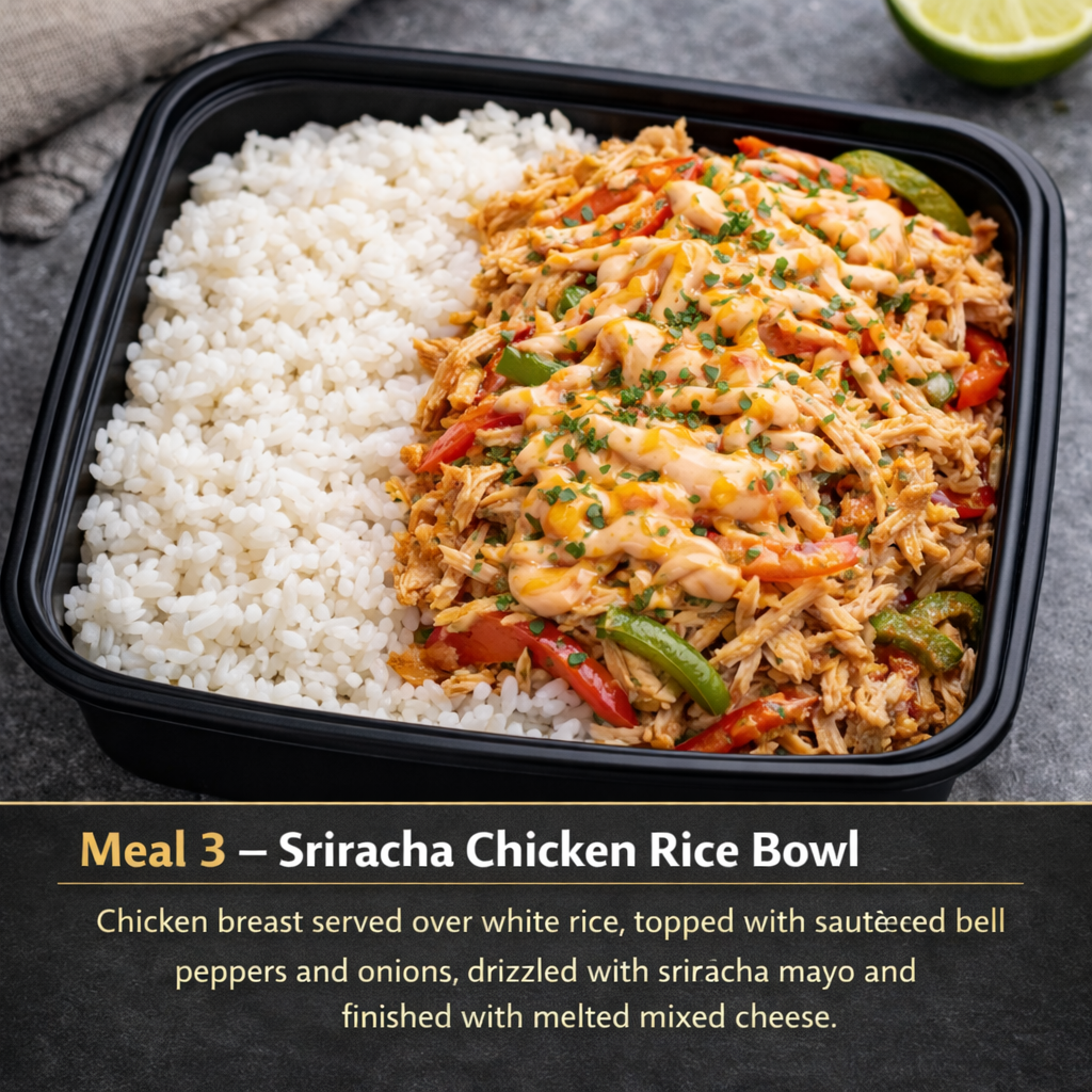 Meal 3 – Sriracha Chicken Rice Bowl
